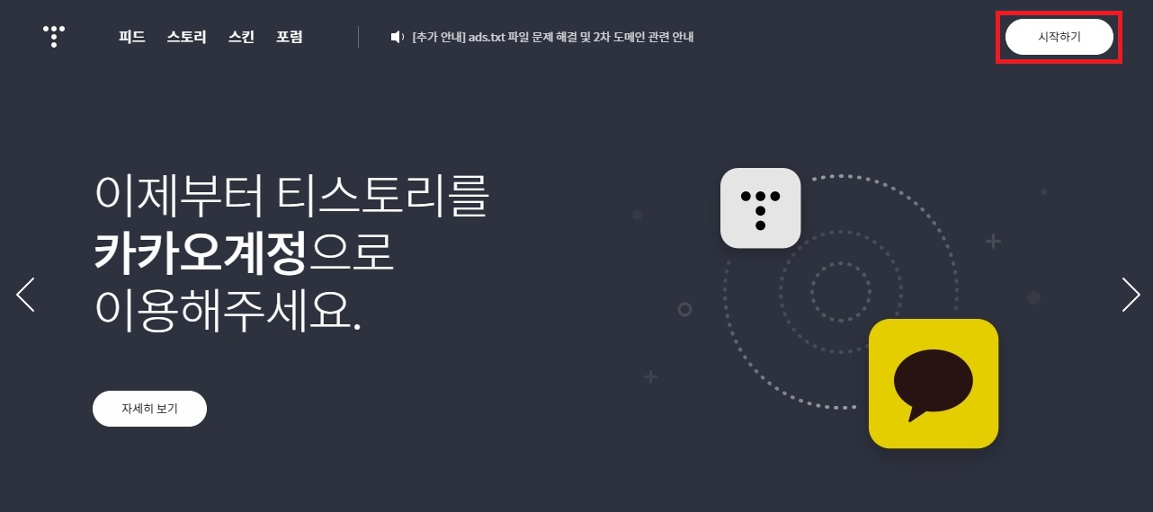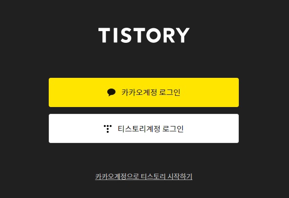 예전에는 티스토리 초대장이 있어야 가입이 가능하였으나 카카오가 인수한 뒤로는 카카오 계정으로 바로 개설이 가능,